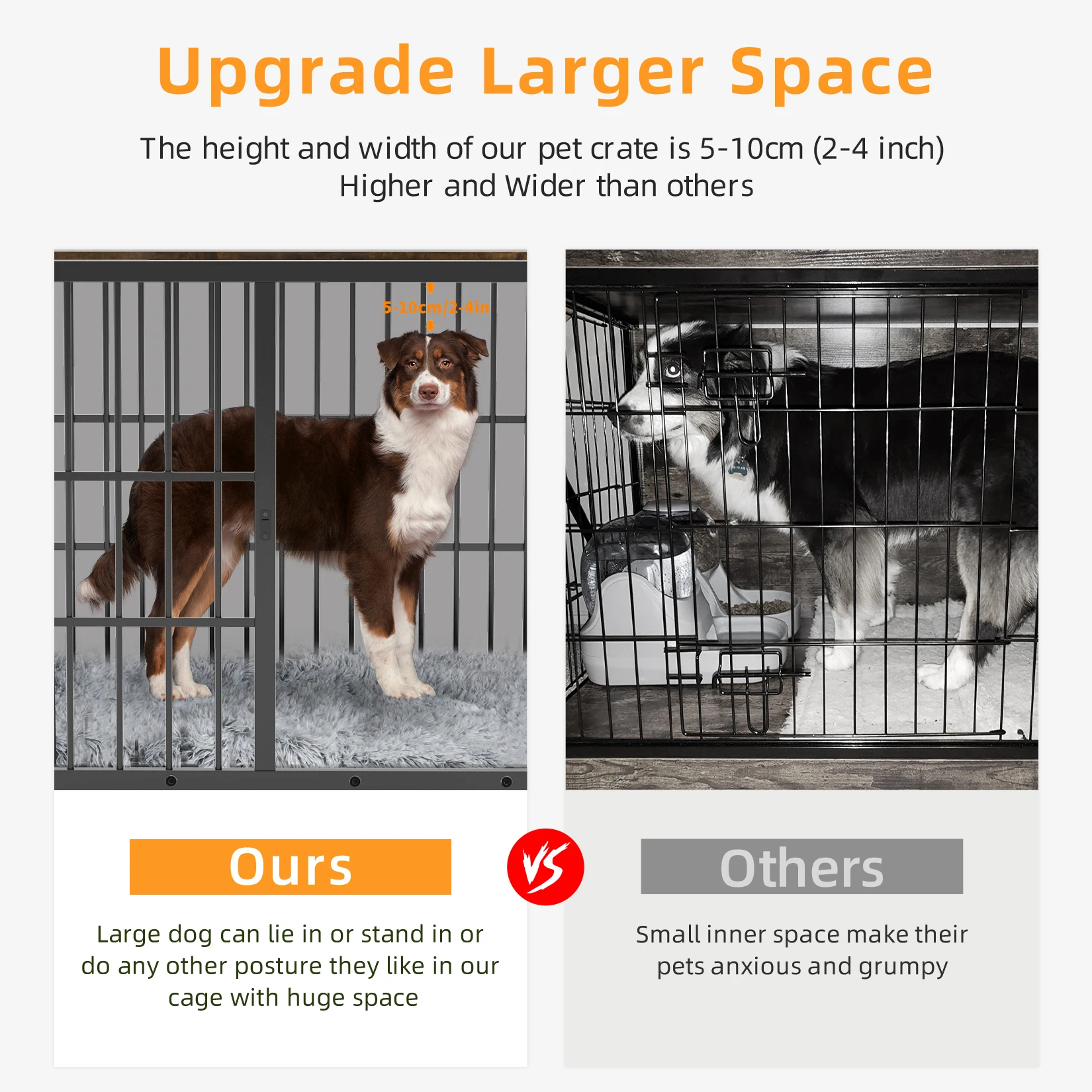 Equipped with wooden table top, can place decorations, dog food, dog toys.