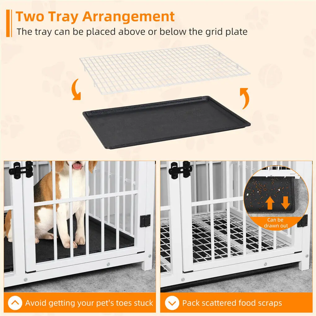 Create a safe, cozy space for your dog while keeping your home stylish. This heavy-duty dog crate blends sturdy metal with warm wood for a furniture-style look that fits beautifully into your living space. Three easy-access doors make it simple for your dog to enter and relax, while the removable tray allows for quick, stress-free cleaning. Designed for comfort, security, and peace of mind, it’s more than a crate—it’s a calm, welcoming place your dog can truly call their own.